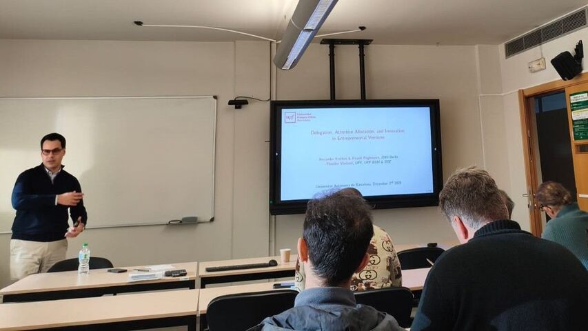 El passat 3 de desembre de 2025, el Departament d'Empresa i el Centre d'Estudis i de Recerca en Emprenedoria i Innovació Social (CREIS) de la Universitat Autònoma de Barcelona (UAB) van organitzar un seminari acadèmic amb el professor Theodor Vladasel, de la Universitat Pompeu Fabra, que va presentar la seva recerca titulada "Delegation, Attention Allocation, and Innovation in Entrepreneurial Ventures".