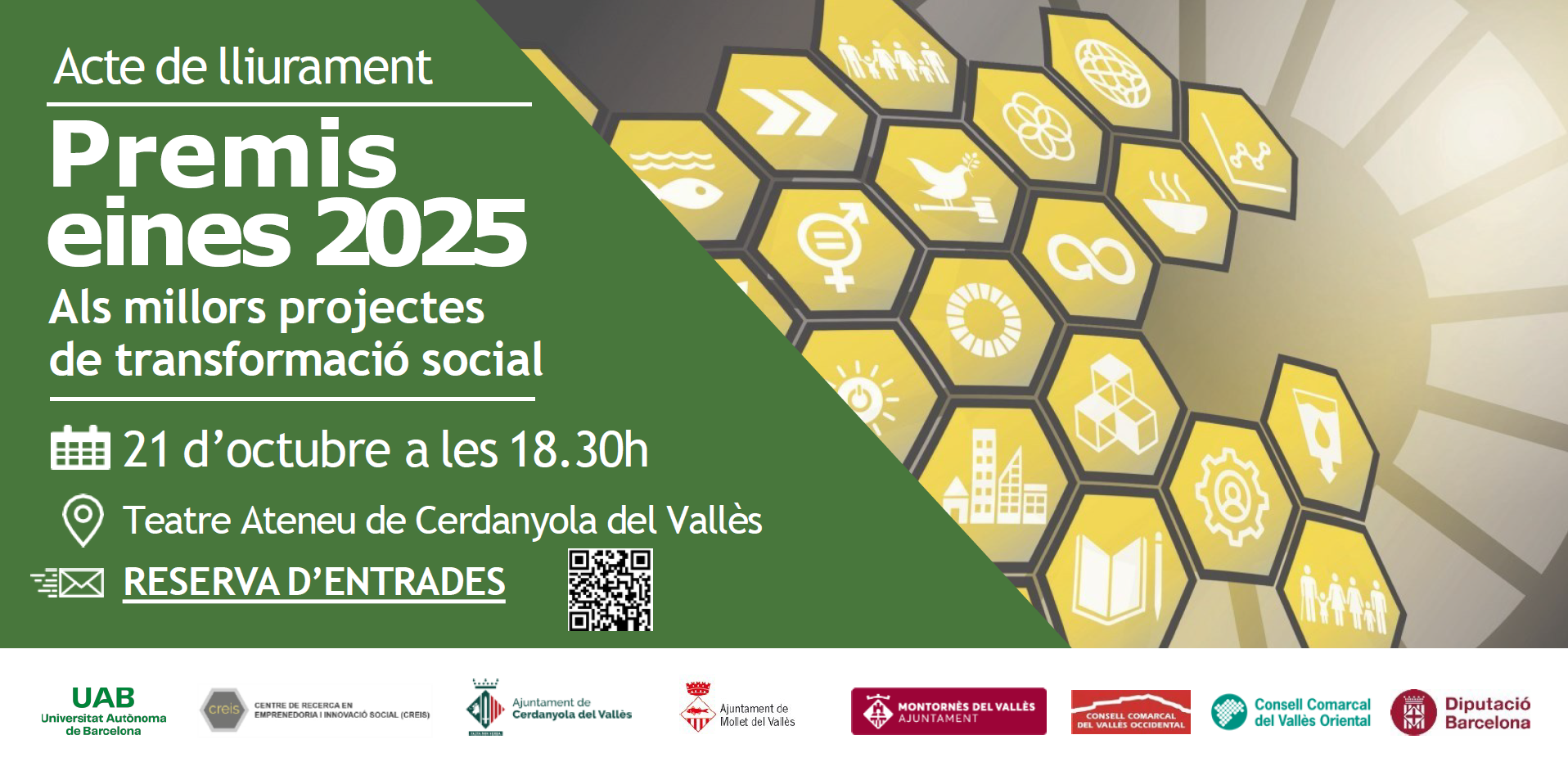 La Càtedra en Emprenedoria i Innovació Social, adscrita al Centre d'Estudis i de Recerca en Emprenedoria i Innovació Social (CREIS) de la UAB, convoca els Premis eines 2025 als millors projectes de transformació social d'àmbit general, d'àmbit vallesà i d'àmbit local.